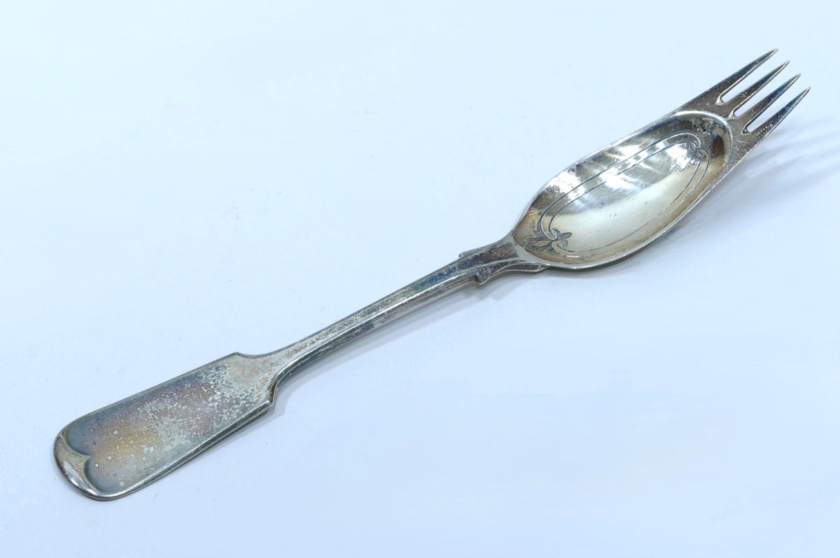 Cette fourchette/cuillère à melon constitue un bel exemple d’orfèvrerie victorienne, élégante et décorative.