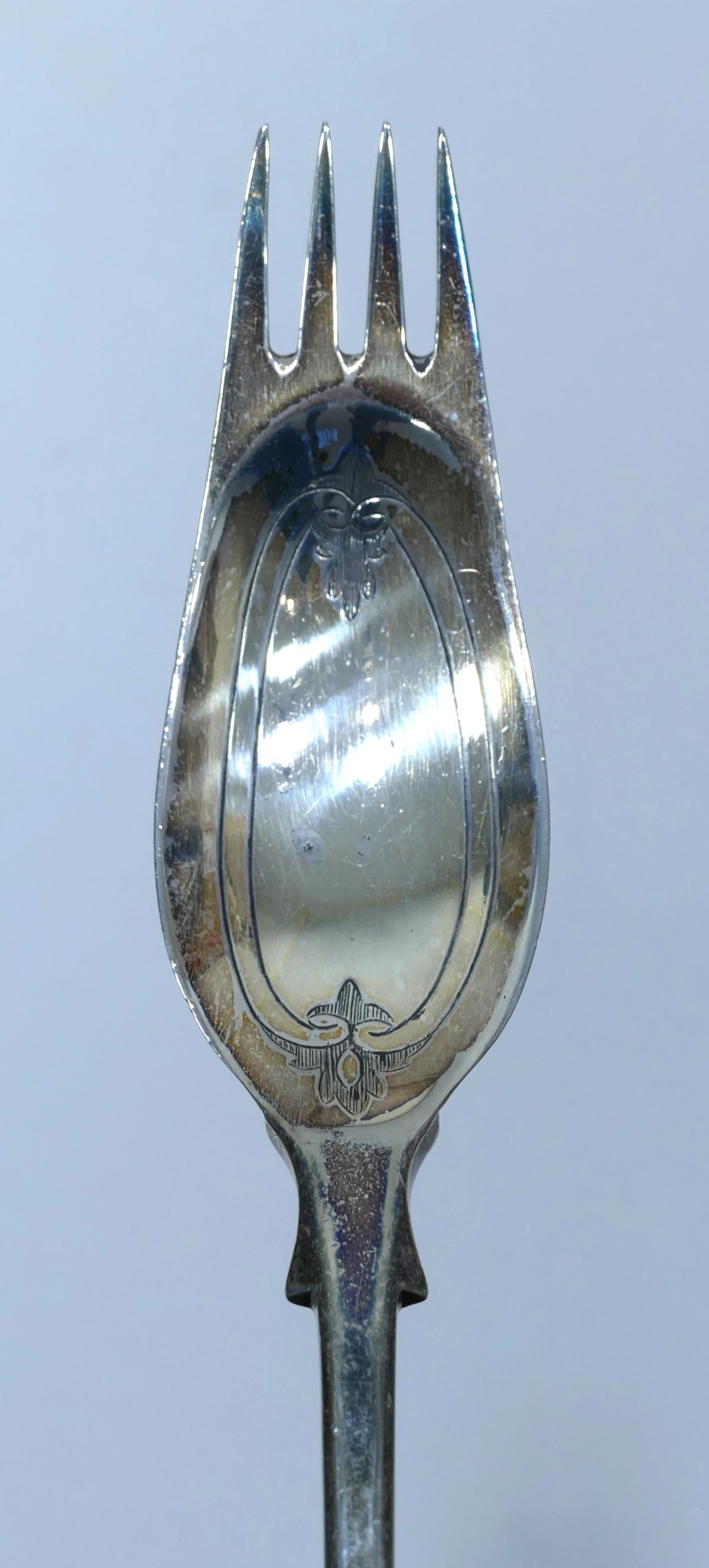 Elégante fourchette/cuillère à melon en métal argenté modèle uniplat forme violon.