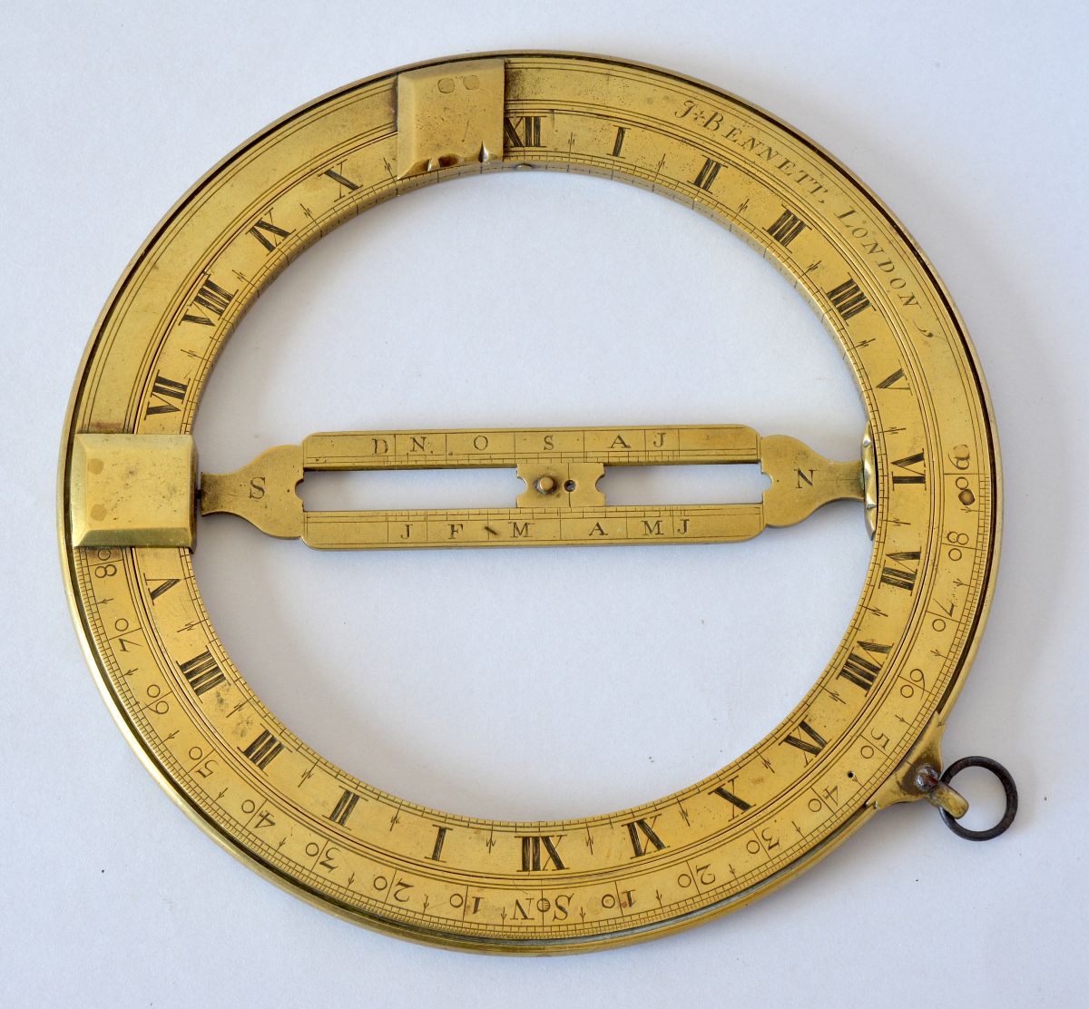 Grand anneau équatorial en laiton portant la signature « J.BENNETT LONDON ».