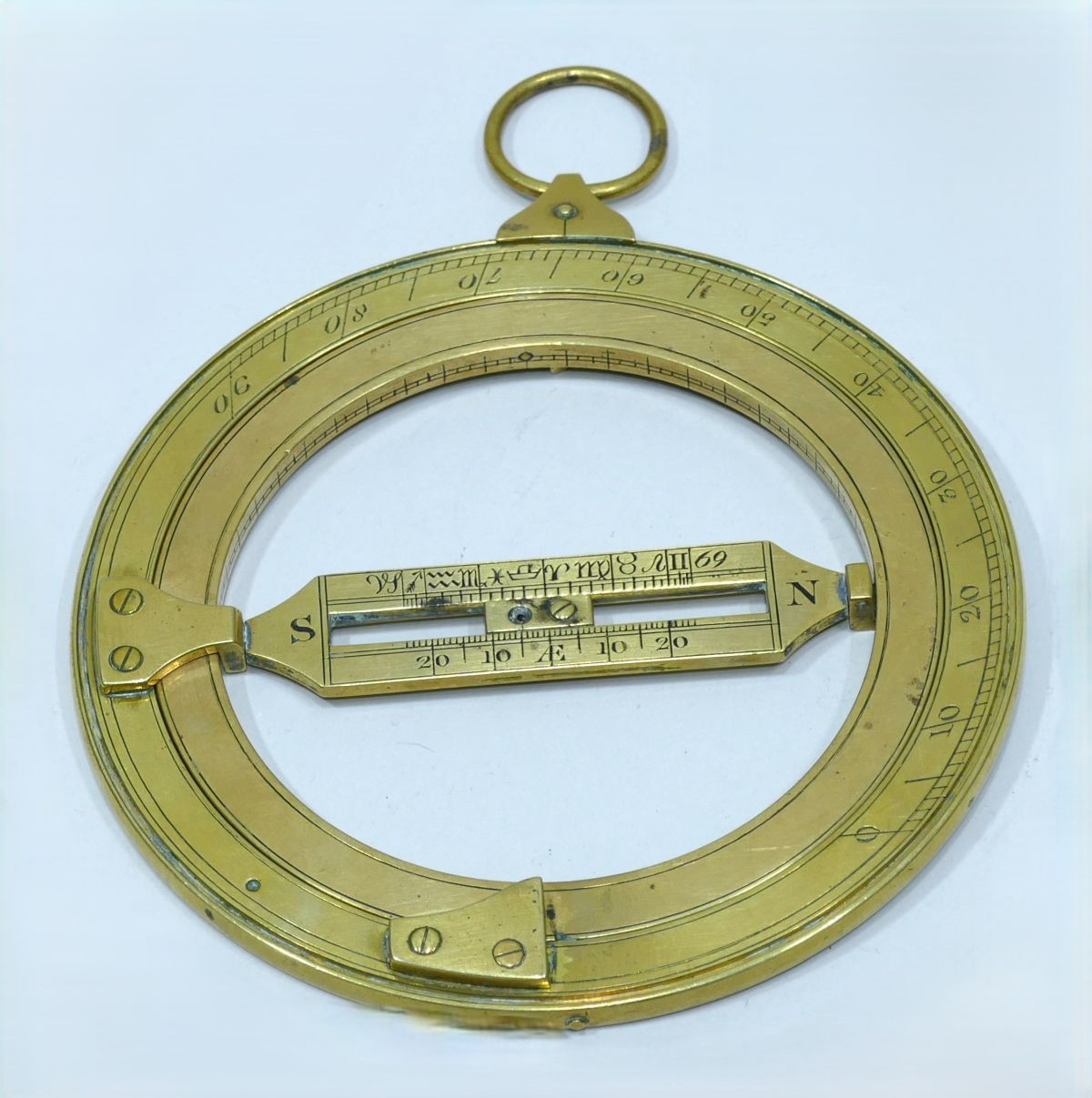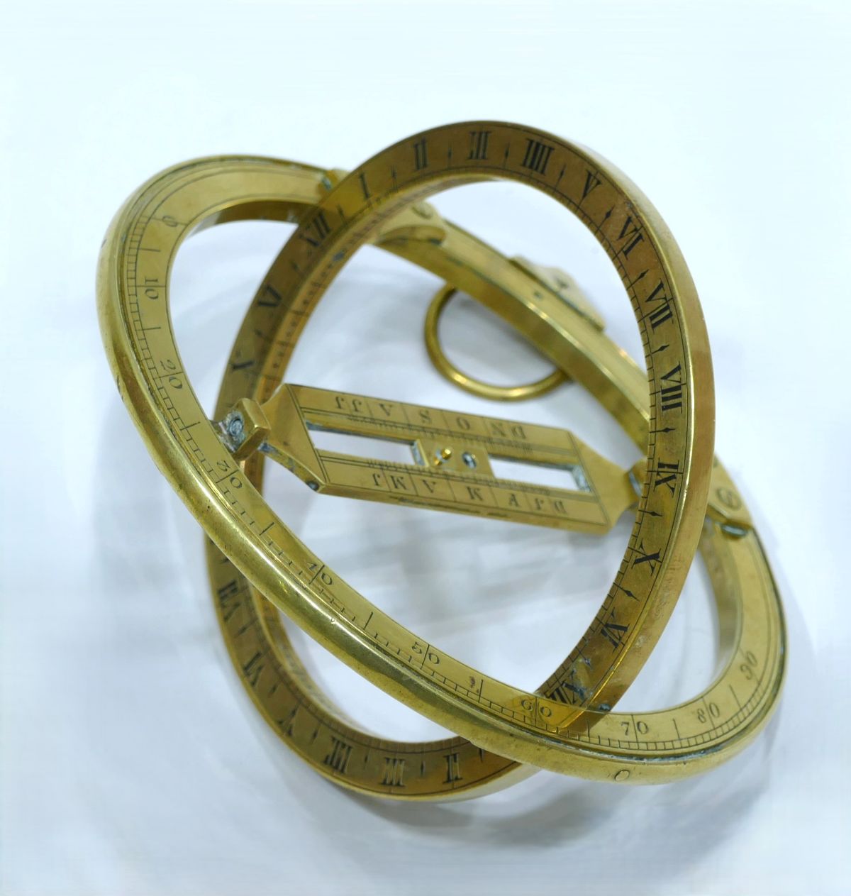Le cercle méridien, côté signature, porte deux échelles des latitudes de 0 à 90 (pour hémisphères Nord et Sud).
