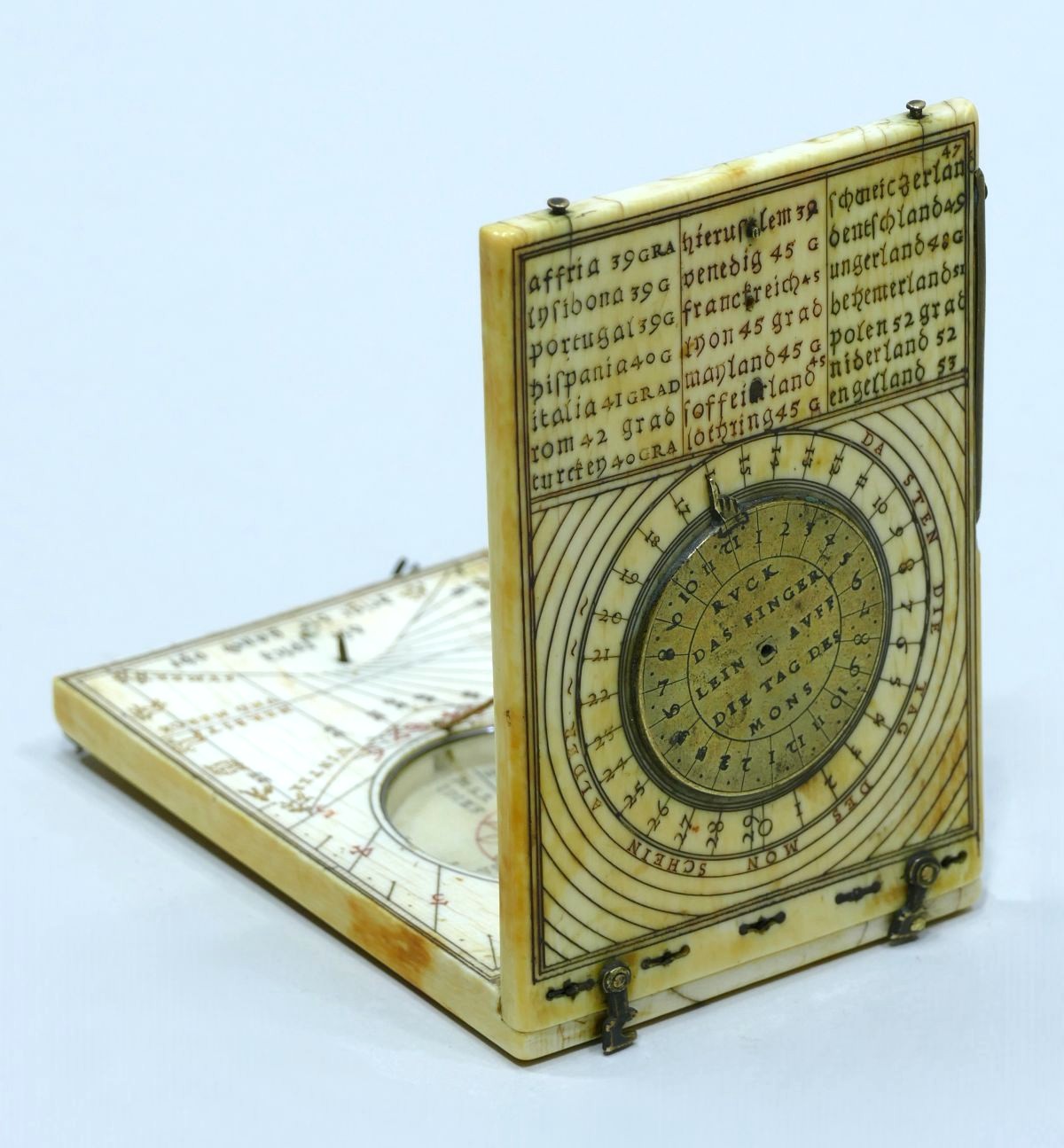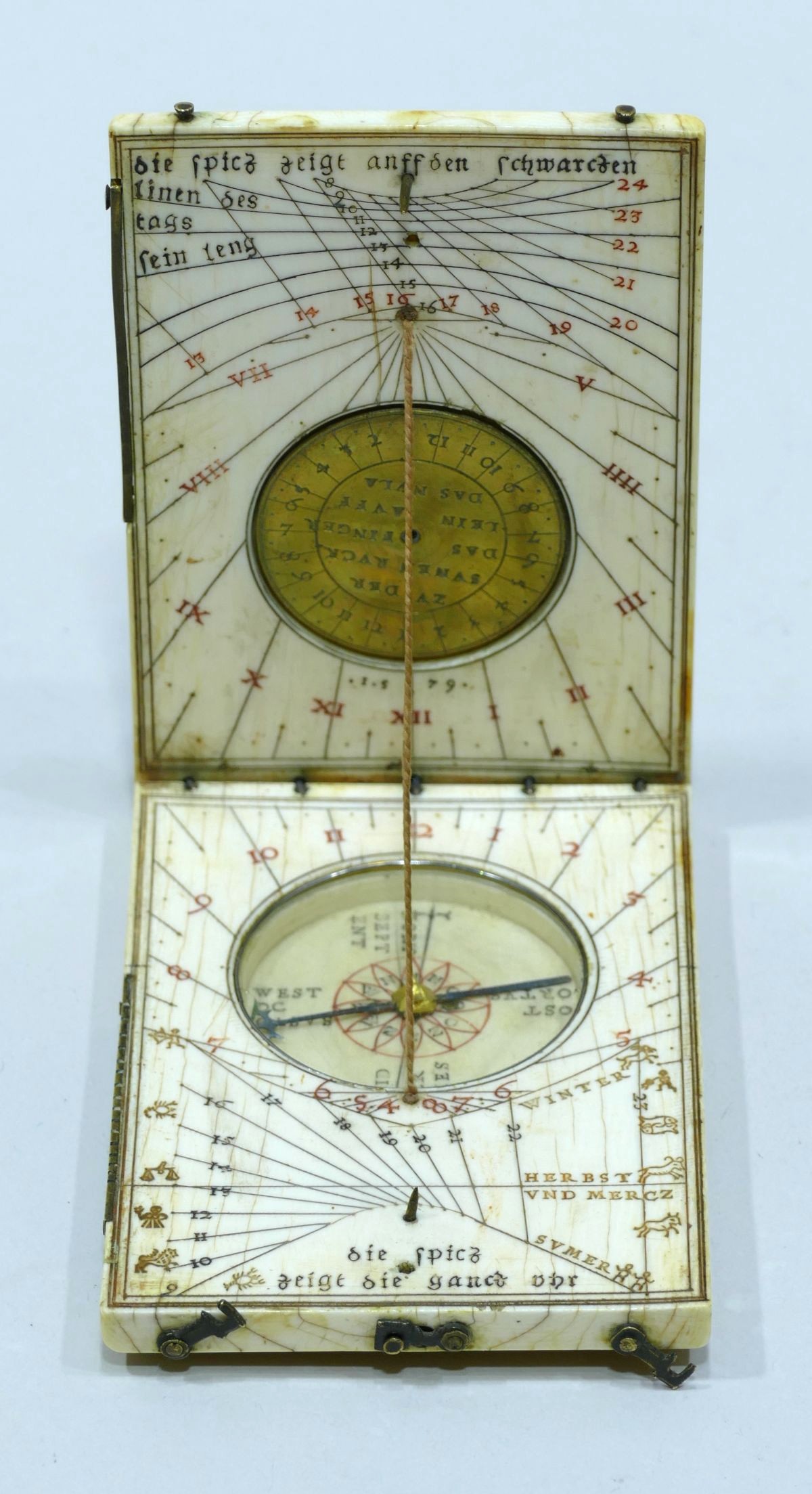 Cadran solaire diptyque en ivoire composé de deux plaques d’ivoire montées sur charnière