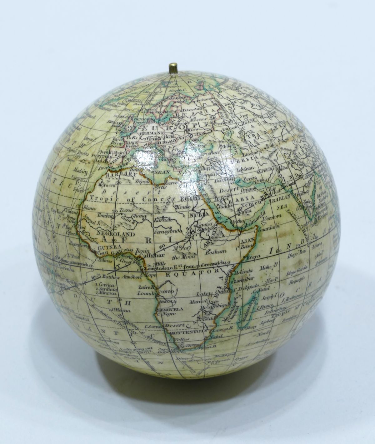 Globe de poche terrestre signé “CARY London” dont le cartouche indique: