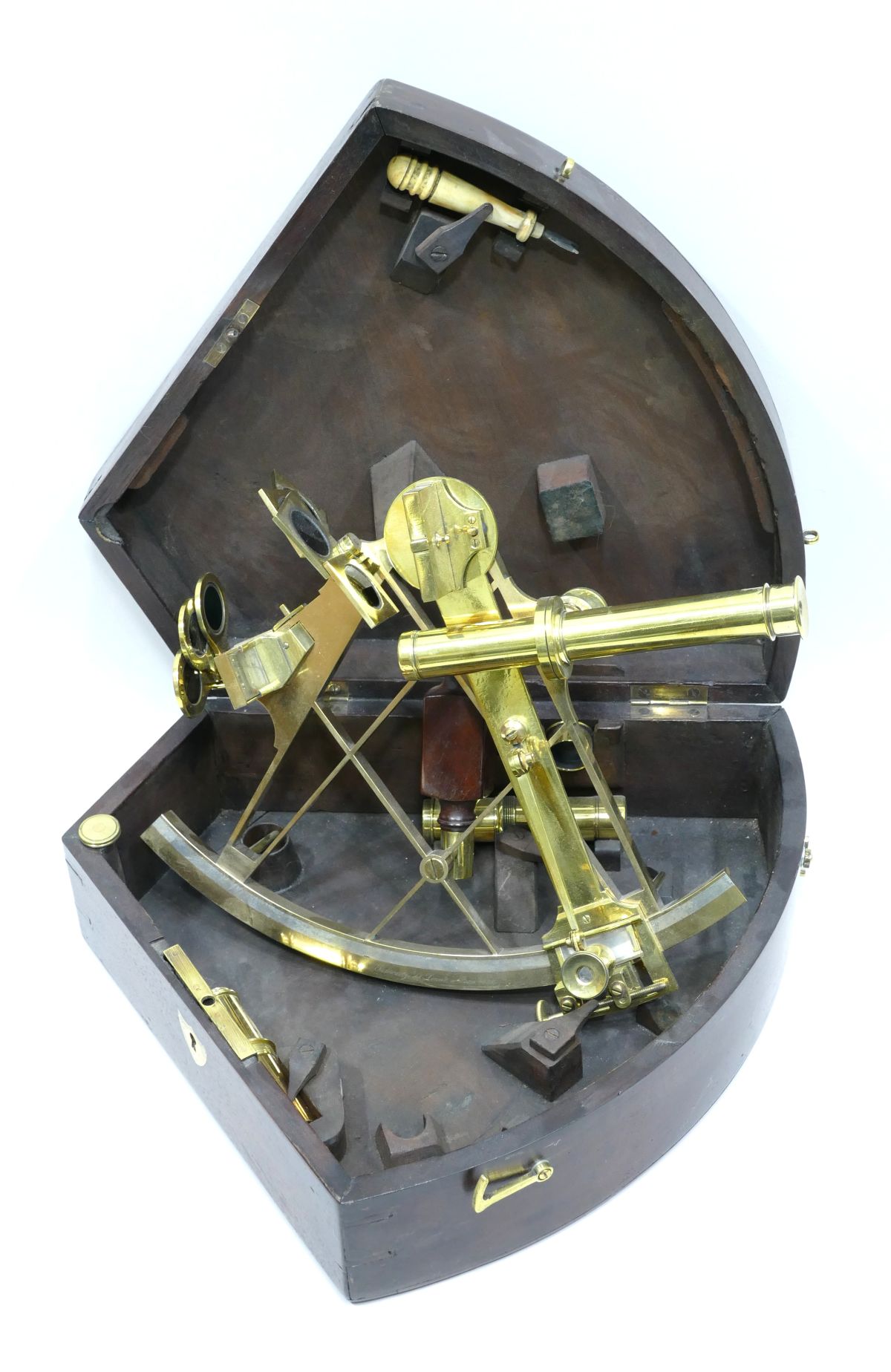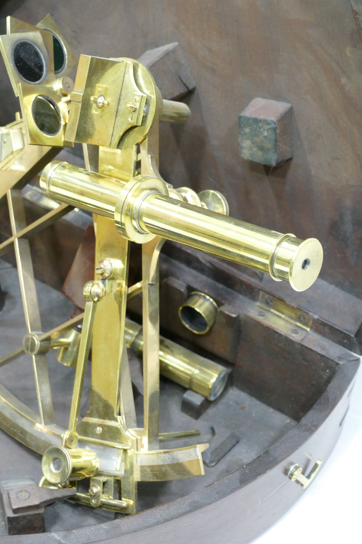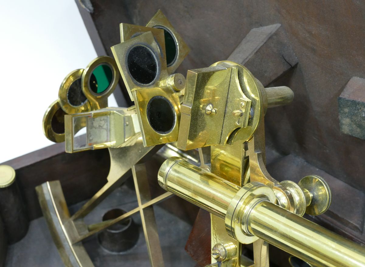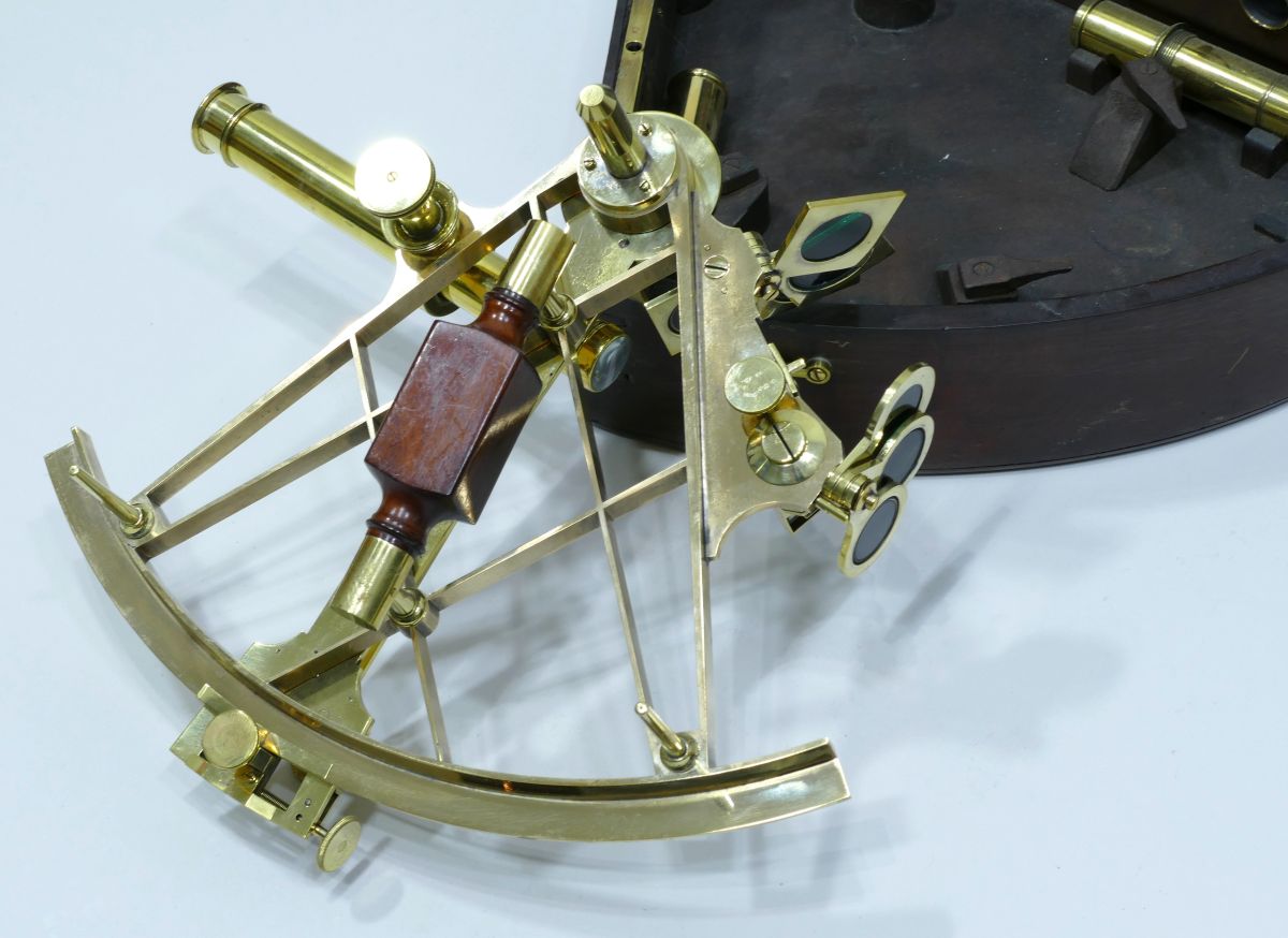 Sextant de marine en laiton avec limbe et vernier divisé sur argent.