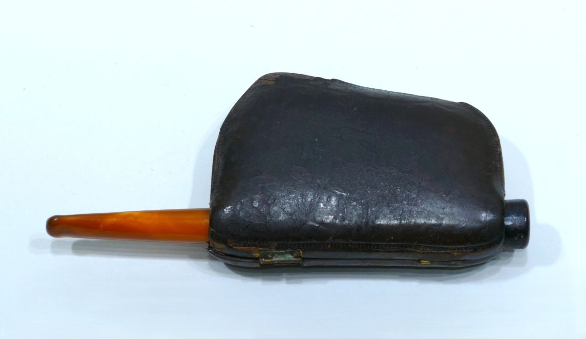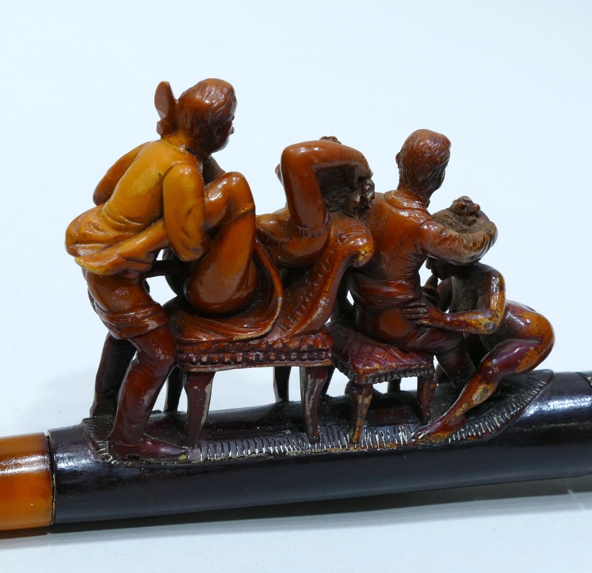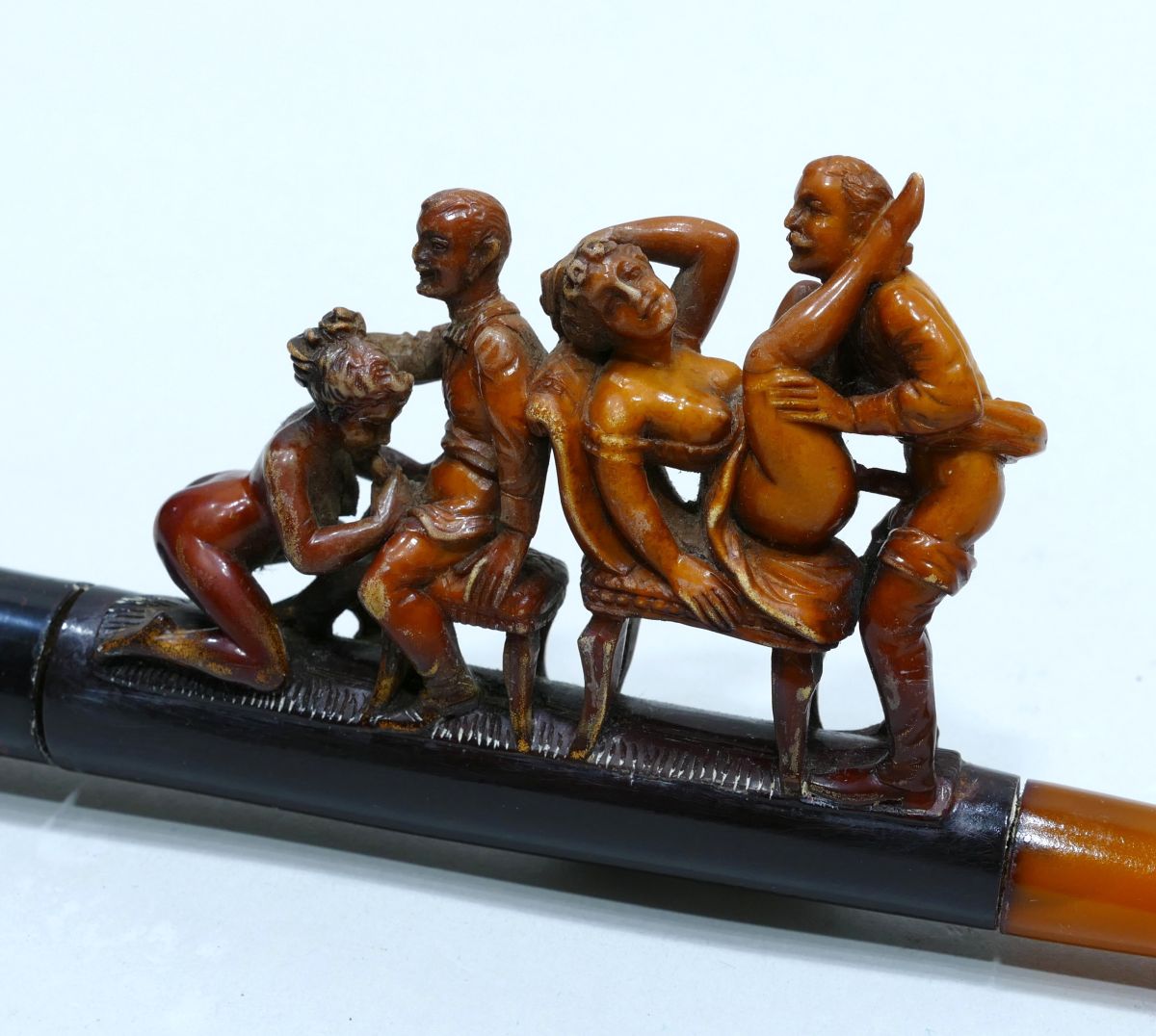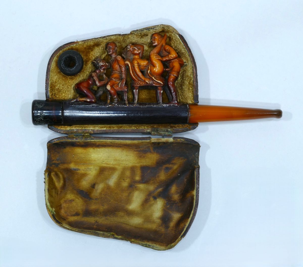 Rarissime fume-cigarette érotique en écume de mer représentant deux couples en action dans des positions différentes.