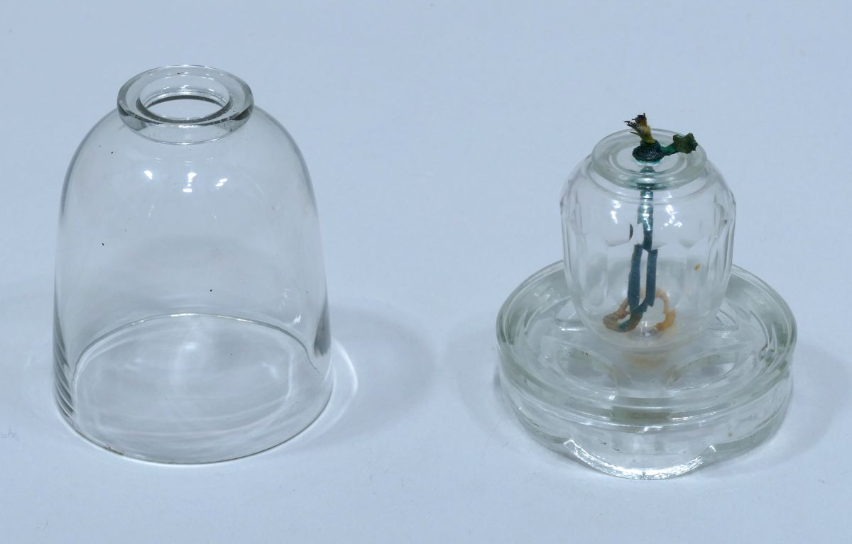 Nota : ces modèles de lampe sont rares. Un modèle de lampe en verre est reproduit dans notre livre "Mémoires d'Opiums" page 129.