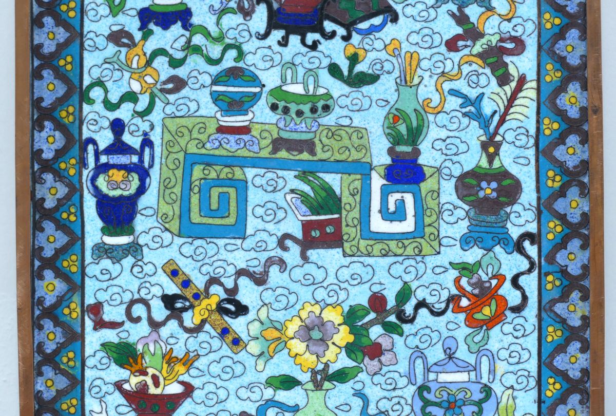 Grand plateau à opium en cloisonné au décor des Cents Antiques datable du 19ème siècle