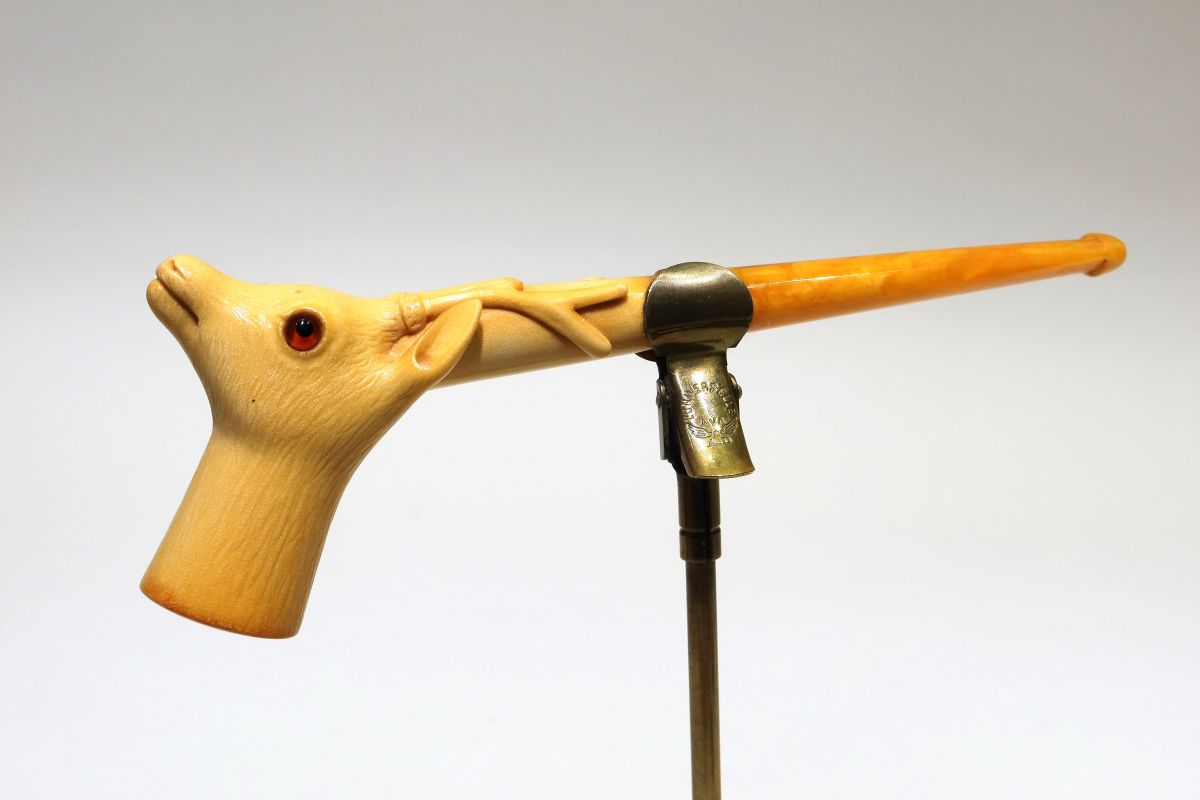 Fume-cigarette en écume de mer représentant une tête de CERF avec ses bois.