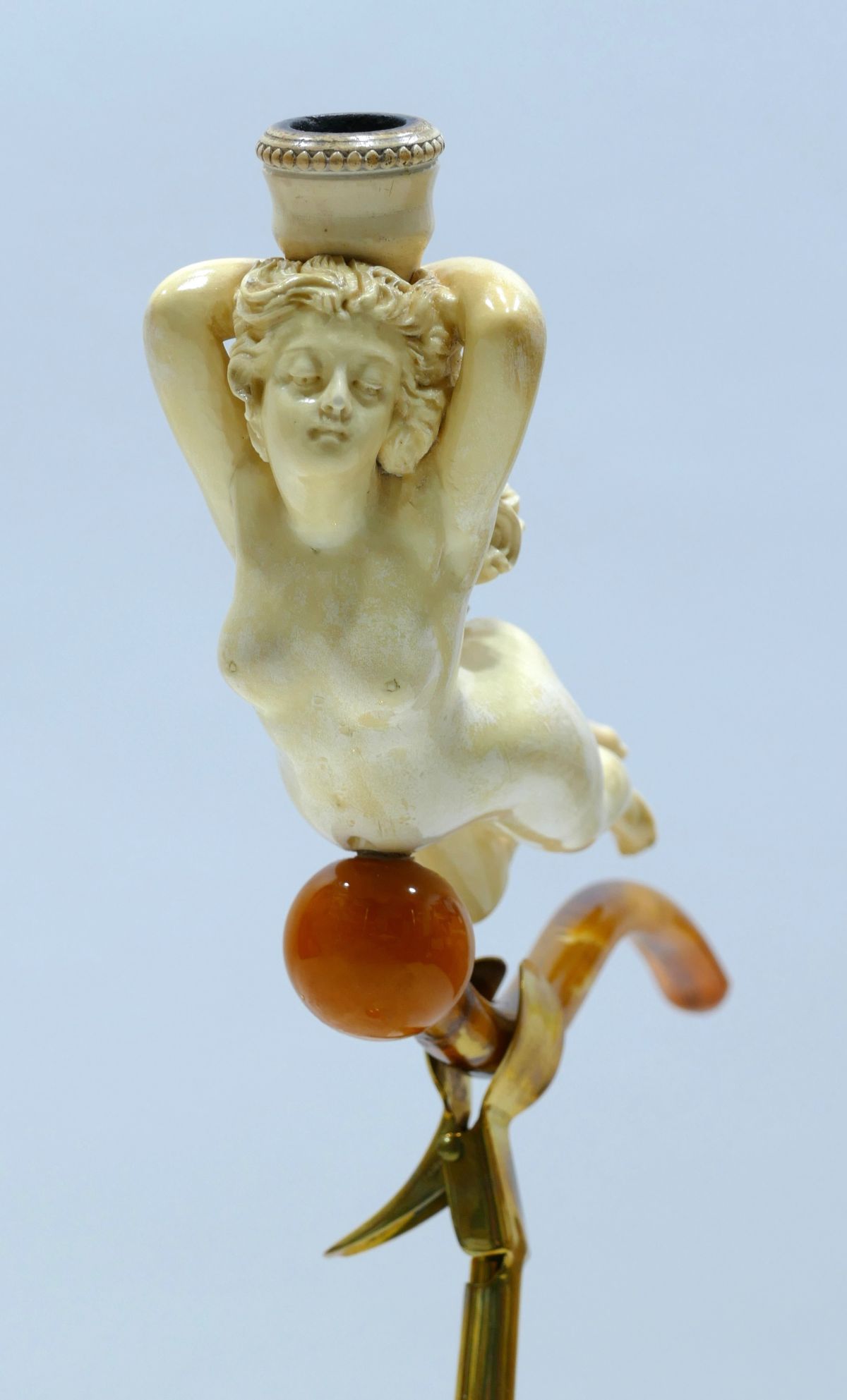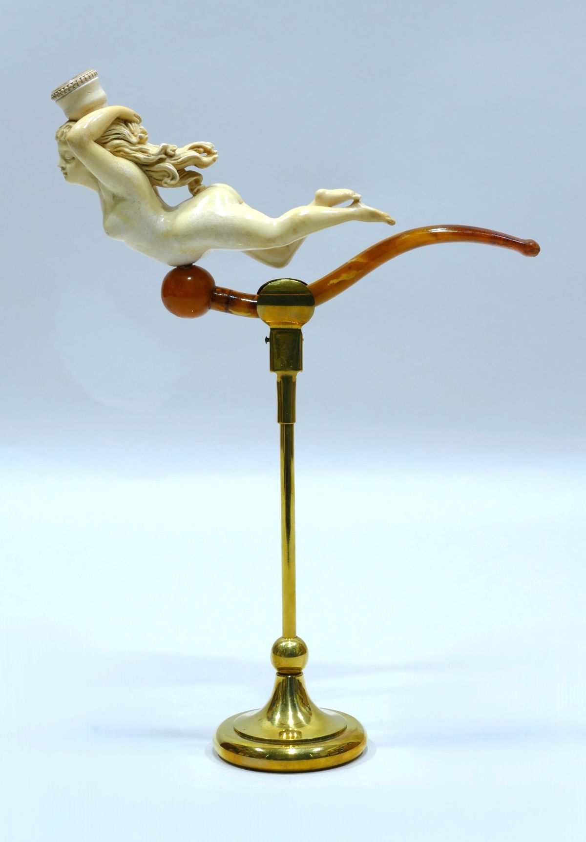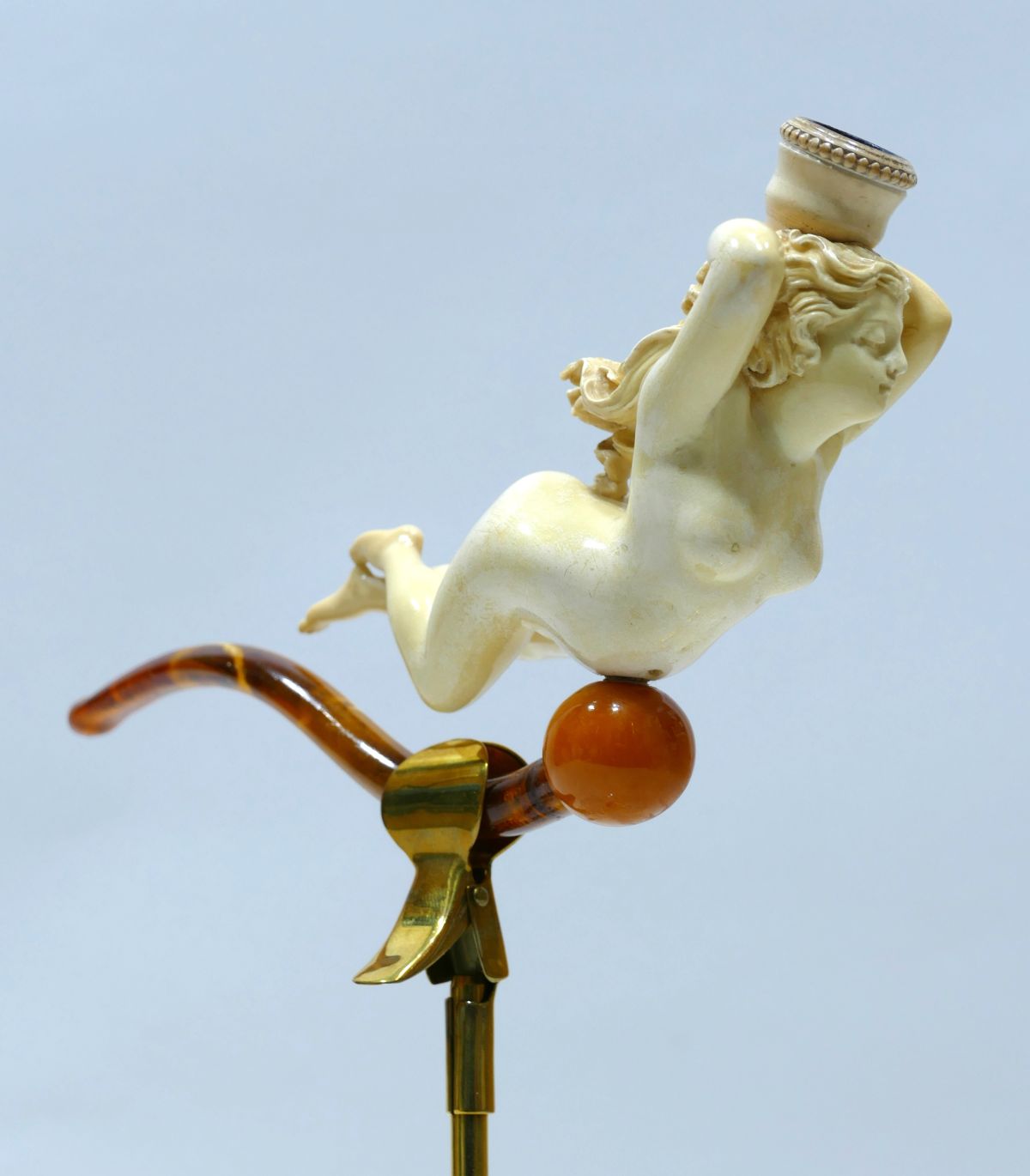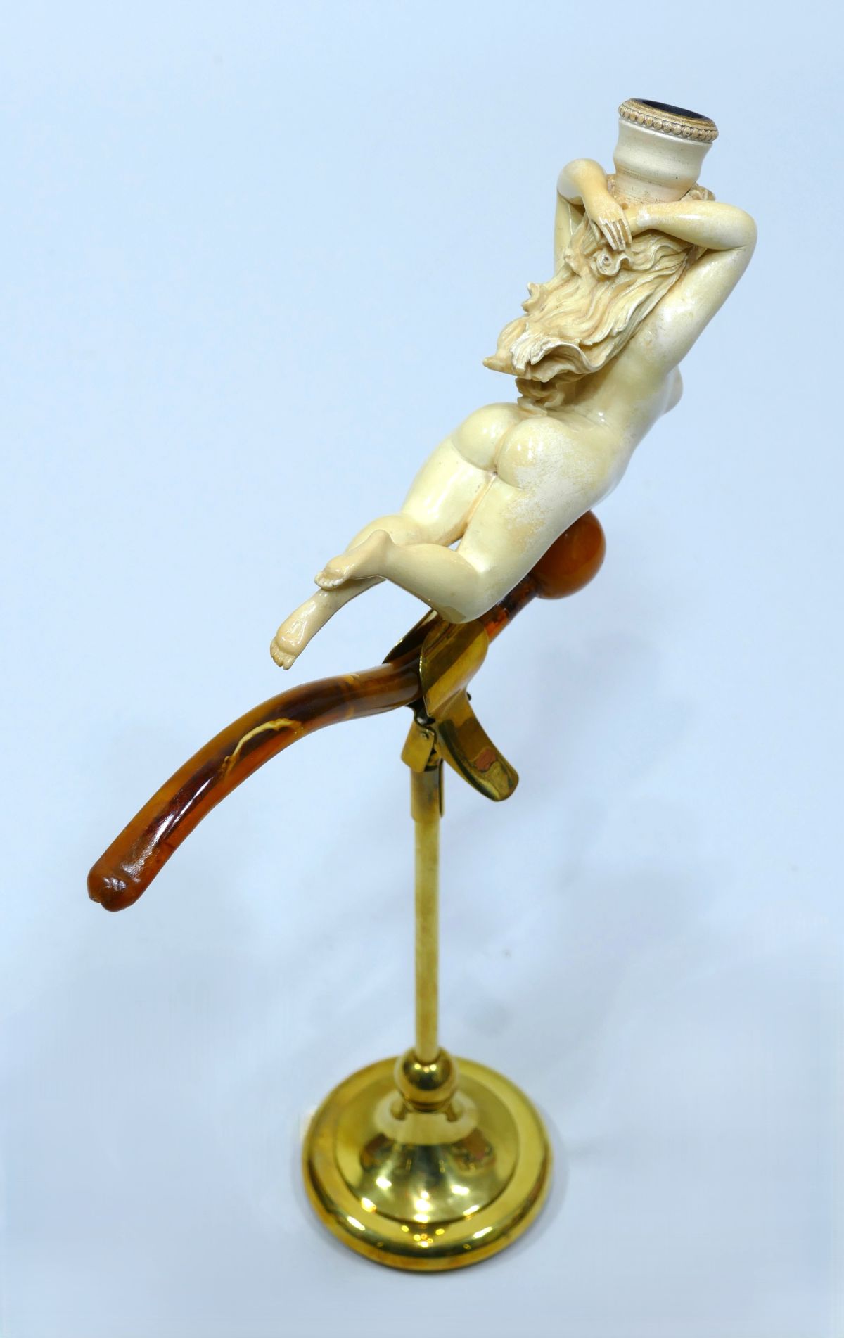 Fume-cigarette en écume de mer représentant une femme allongée nue les cheveux au vent.