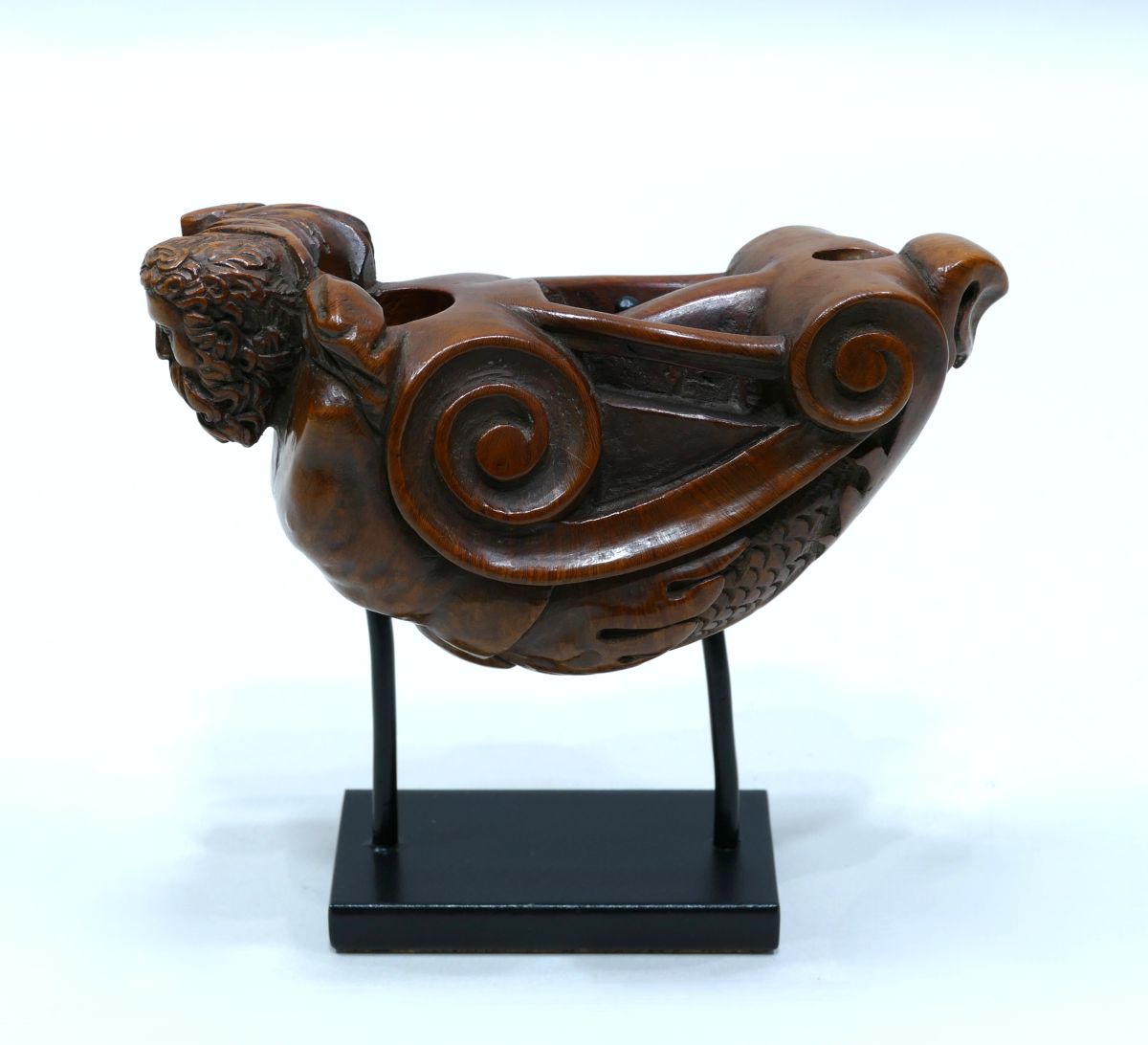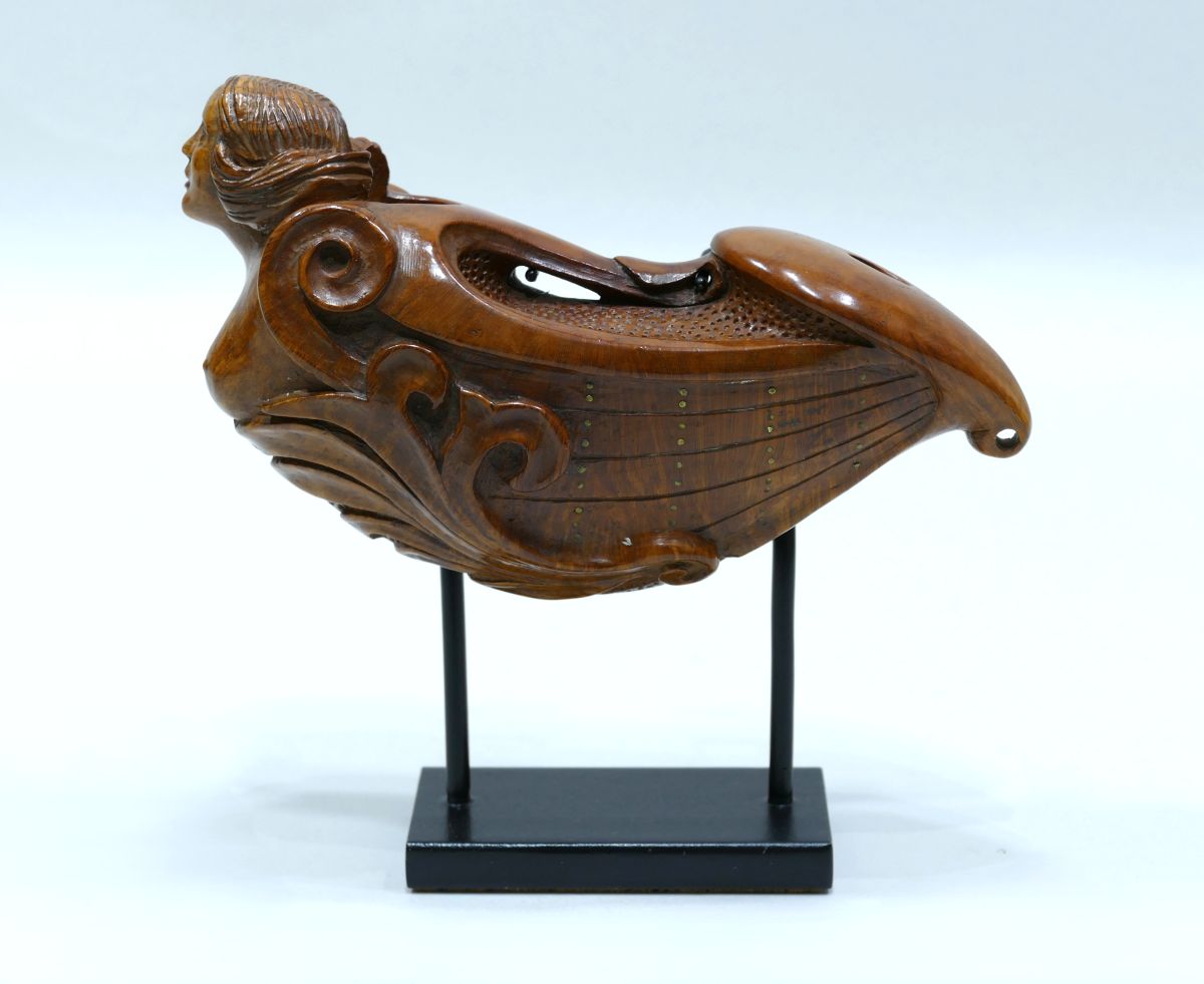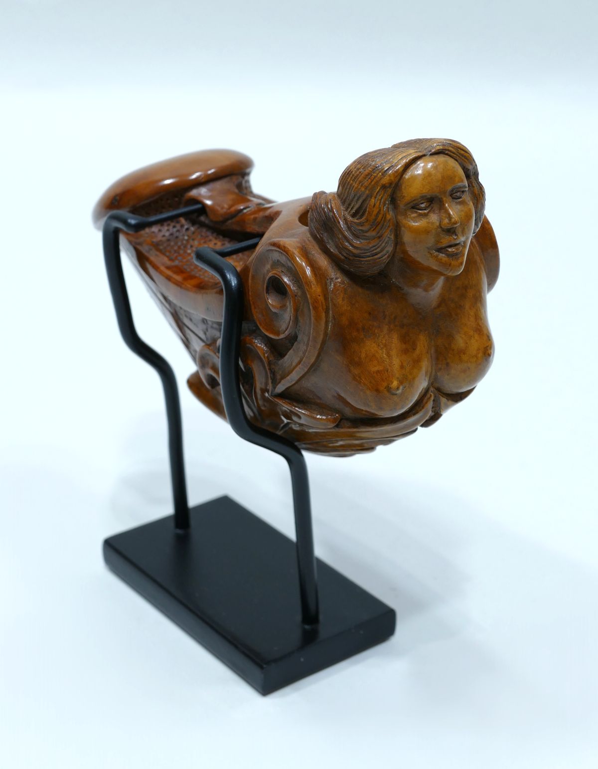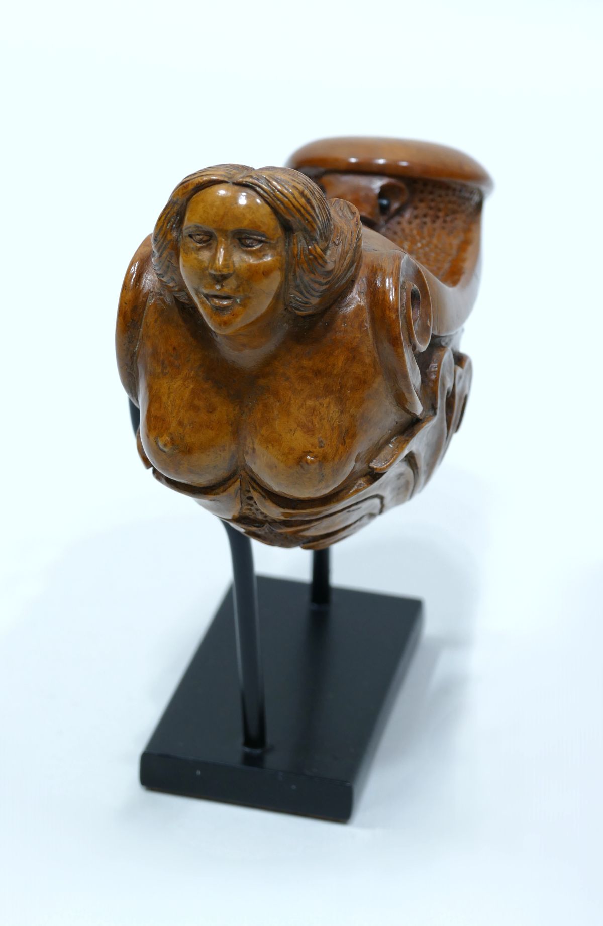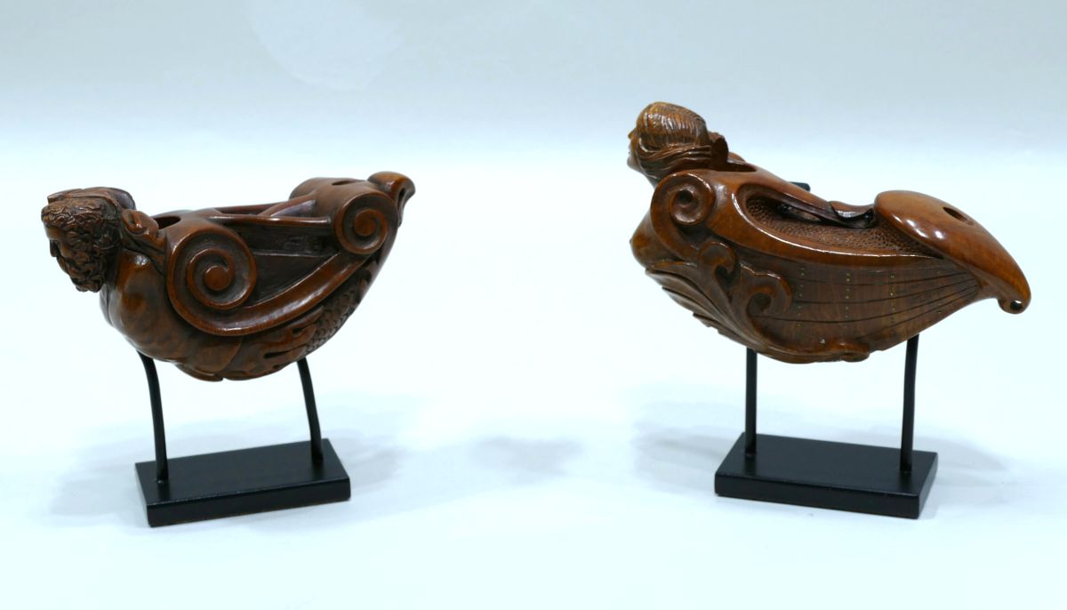 Ensemble de deux fourneaux de pipe en buis sculptés en forme de figures de proue.