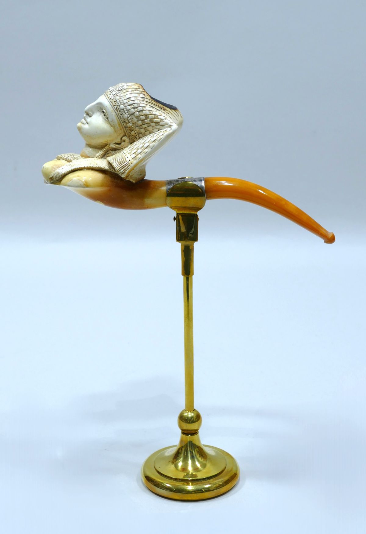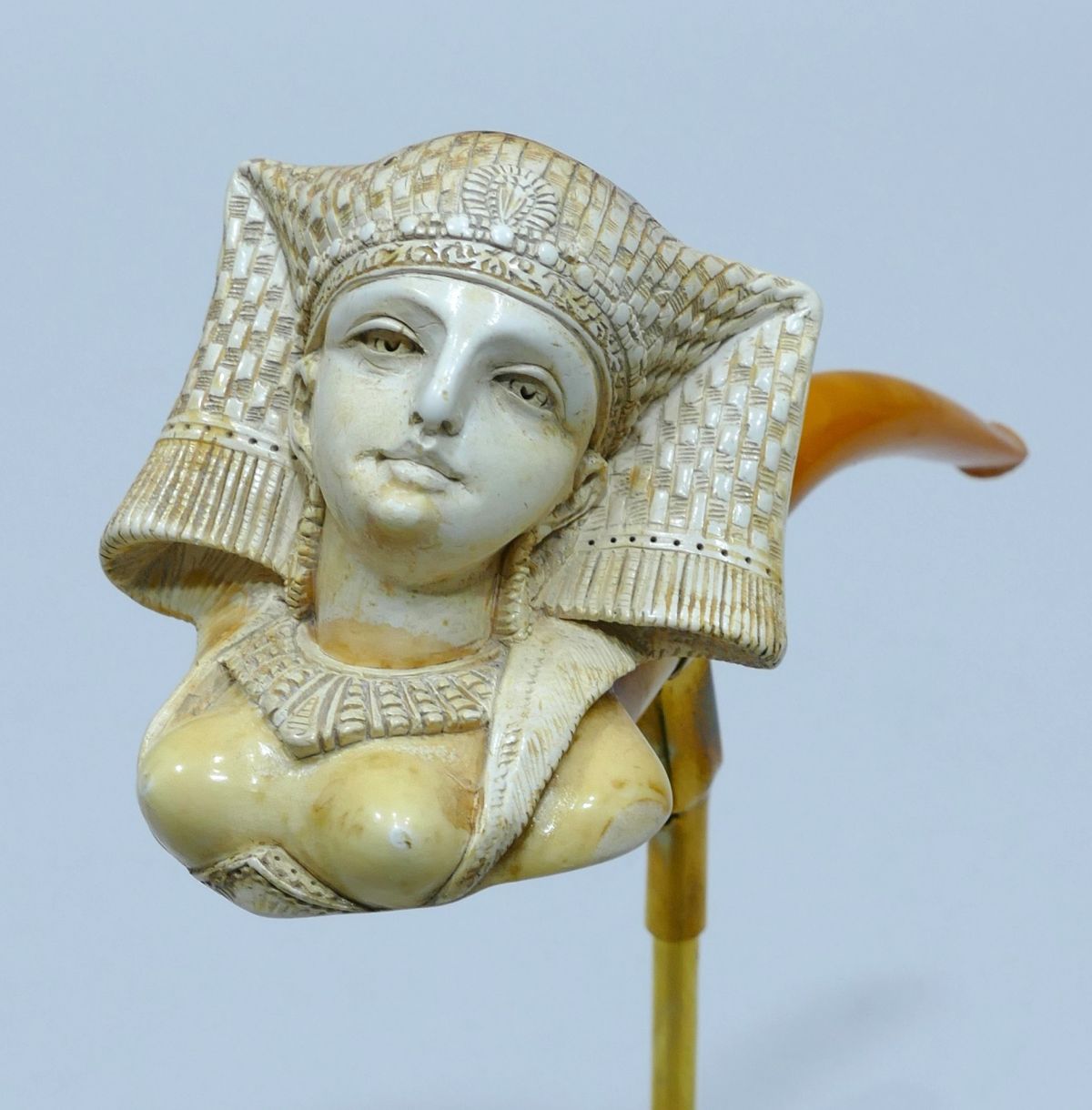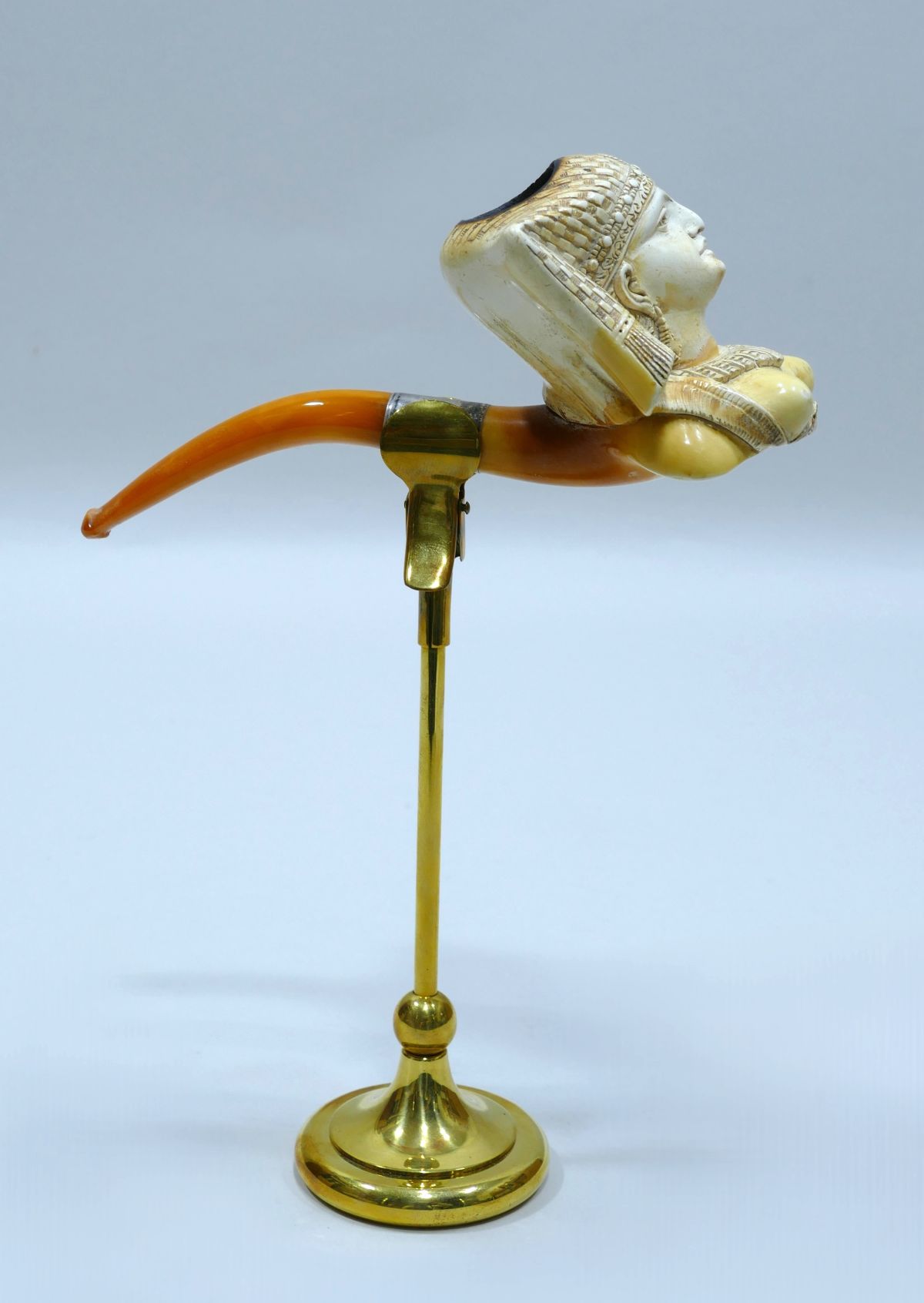 Pipe en écume de mer représentant une femme égyptienne en tenue d’apparat.